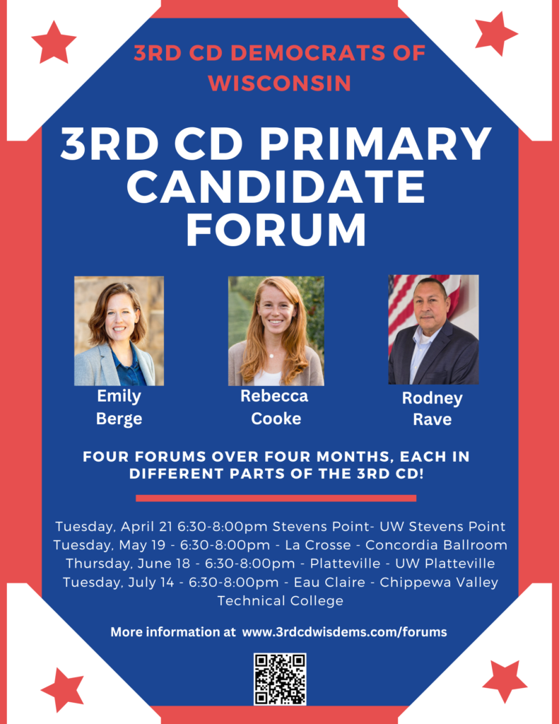The 3rd CD will be hosting four 3rd CD Democratic Primary Candidate Forums, one in each of the four regions of the CD. This will ensure everyone in the 3rd CD will have easy access to at least one of the forums.